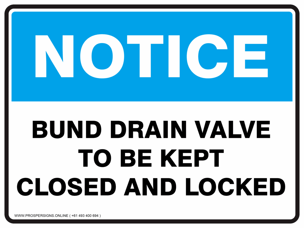Be the first to review “Notice Sign – BUND DRAIN VALVE TO BE KEPT CLOSED AND LOCKED”