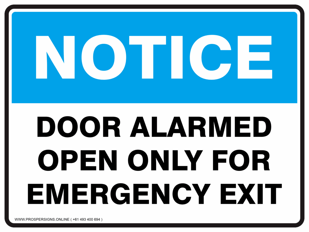 Notice Sign – DOOR ALARMED OPEN ONLY FOR EMERGENCY EXIT