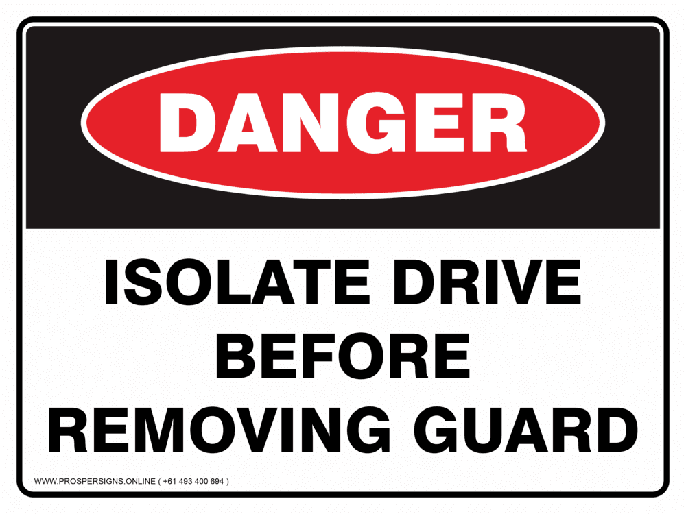 Danger Sign – ISOLATE DRIVE BEFORE REMOVING GUARD