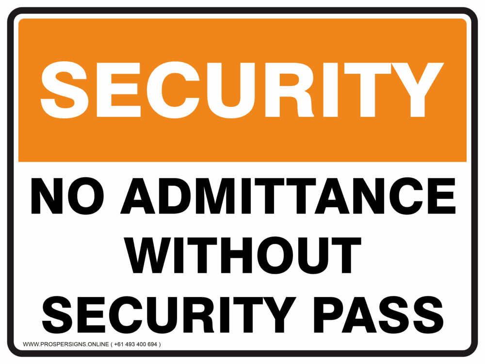 Security Sign – NO ADMITTANCE WITHOUT SECURITY PASS